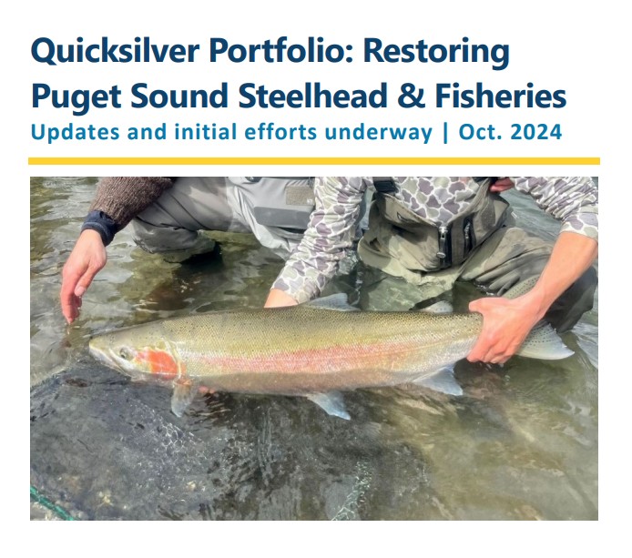 The return of the beloved Skagit and Sauk winter/spring wild steelhead fishery is one of the Quicksilver Portfolio’s crown jewels, but the program also expanded steelhead monitoring in the Nooksack, Samish, Stillaguamish and Snohomish waters, and outlined the development of sonar and video run counting for the Skagit, Samish and Nooksack Rivers. The program also supported the new summer run broodstock program on the Skykomish River to replace the previously planted out-of-basin Skamania stock.
